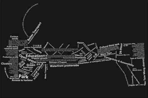 The image above is a scheme made by OMA for a conceptual masterplan for a cultural district in Honk Kong.
