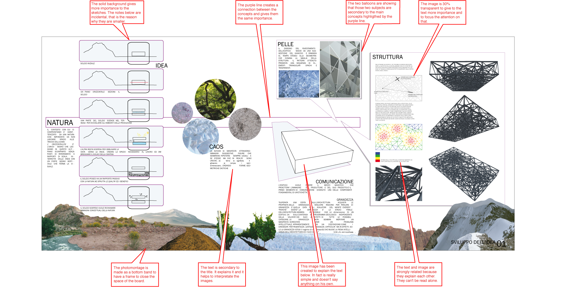 In order to communicate an idea through white bi-dimensional space you must think first about the space of the text, choosing which part of the concept will be the main and which will be subordinate, what has to be communicated first and what is just secondary.