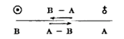 Avevo però trascurato due figure [Fig. 1a e 1b] abbastanza interessanti trovate in Lectures on Quaternions (1853) [1]: si vedono due punti (A e B) e un segmento; il segmento, se letto in un verso è il vettore AB, se letto nell’altro è il vettore BA; le frecce che indicano come leggerlo sono disposte una sopra e l’altra sotto, sfruttando in modo efficace la disposizione nello spazio dei segni.