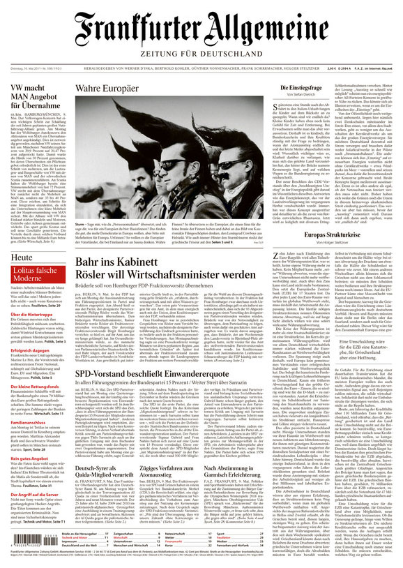 Giornale Tedesco. Frankfurter Allgemeine Zeitung Giornale Italiano. La Stampa
